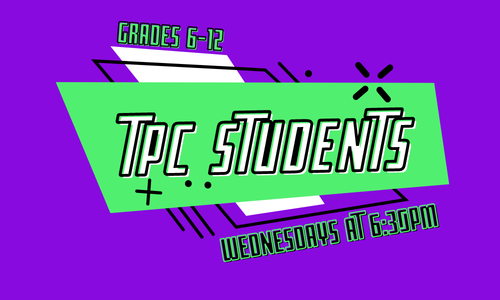 In our student ministry--TPC Students--we serve students from 6th through 12th grade. We meet on Wednesday nights from 6-8 pm in our sanctuary. During this time, we participate in group games, student-led worship, and a Bible study. We then break up into grade-appropriate small groups where we go through the Bible study a little deeper and see how it is applicable to our everyday lives. Our leaders provide guidance and loving role models for the kids through these small groups and also build relationships that last a lifetime.